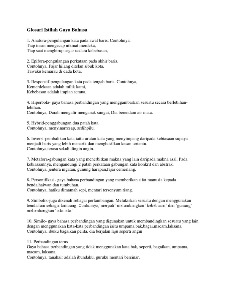 Contoh Contoh Gaya Bahasa Atau Majaz Pdf
