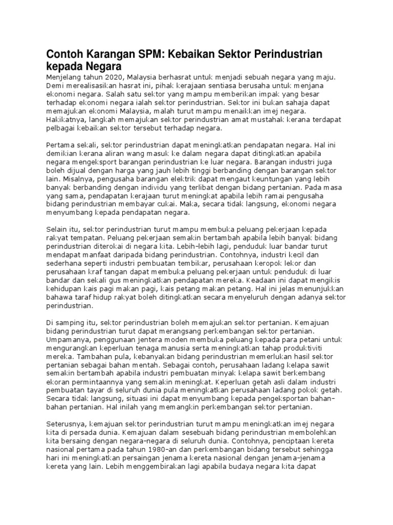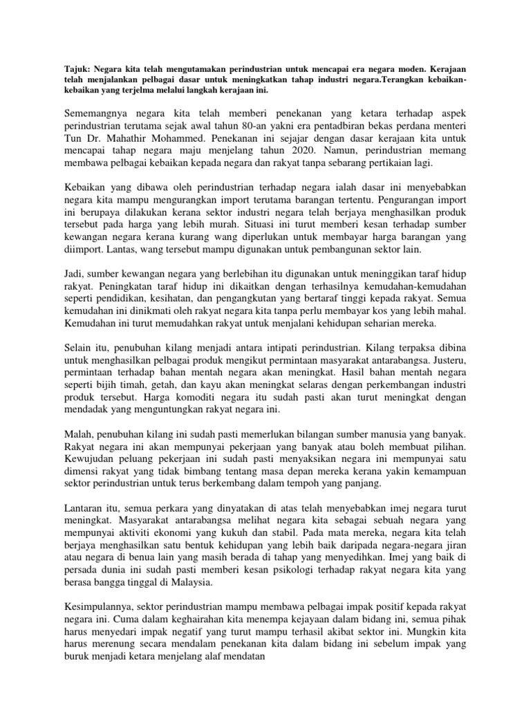 Malaysia mampu menjadi negara industri dalam tempoh dua dekad lagi usaha kerajaan dalam Strategi Lautan Biru Kebangsaan NBOS melipatgandakan produk eksport barangan siap selain produk elektrik dan elektronik meningkatkan pendapatan KDNK negara Kesimpulan. Murid dikehendaki menggunakan kerangka dan contoh yang disediakan bagi menghasilkan laporan kerja lapangan. Oleh hal yang demikian industri pelancongan mempunyai potensi besar dan mampu dijadikan sumber pendapatan negara.
